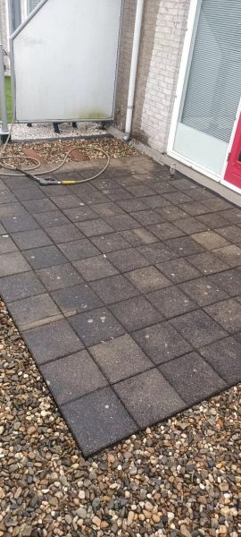 Hier een mooi voorbeeld dat ook de tegels op het dakterras of balkon weer mooi schoon kunnen worden.