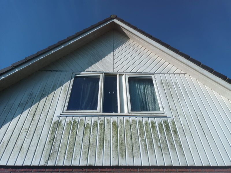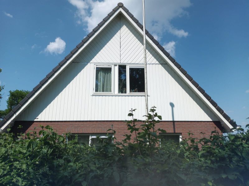 Hier hebben wij het dak schoongemaakt met warm water en gepaste druk. Na het reinigen het dak inzetten met een anti schimmel. Ook de twee topgevels zijn schoongemaakt.
