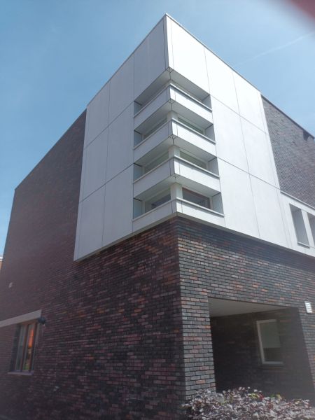 Hier hebben wij de witte trespa platen schoongemaakt. Deze waren na de nieuw bouw niet meer schoongemaakt. Met als resultaat ergvuil en veel weervlekken erin. Maar wij hebben het weer netjes gekregen. Tip om het gewoon elkjaar schoon te laten maken.
