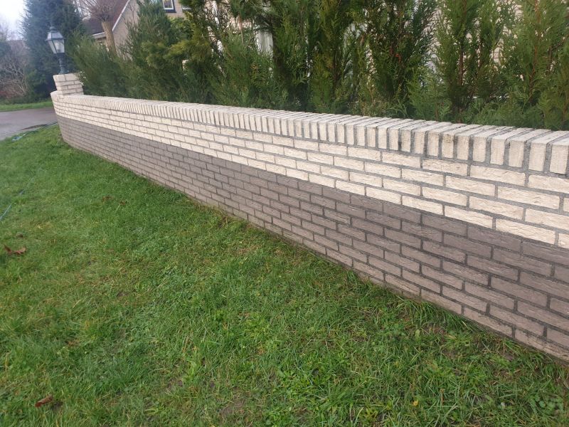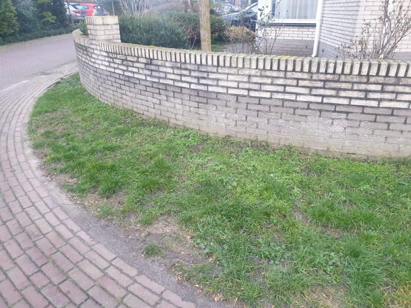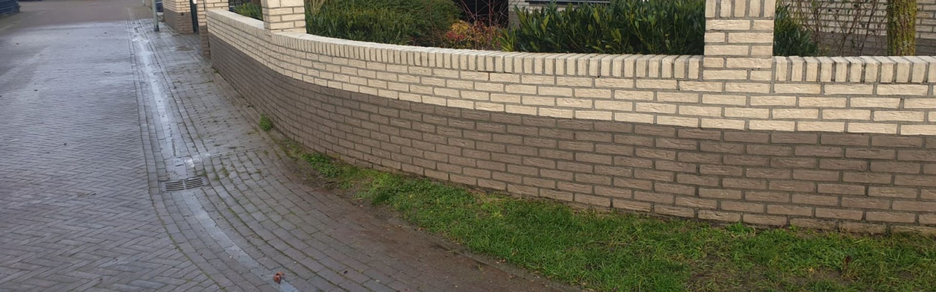 Hier een lange tuinmuur schoongemaakt met warm water. De gevel ingezet met een anti schimmel.