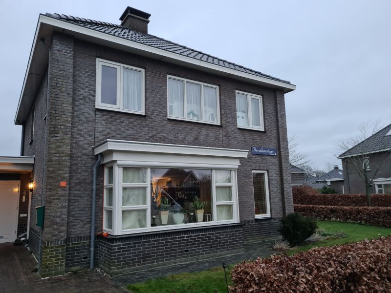 Gevelreiniging van voor gevel deze was helemaal wit uitgeslagen. Ziet er na de schoonmaak weer mooi uit.