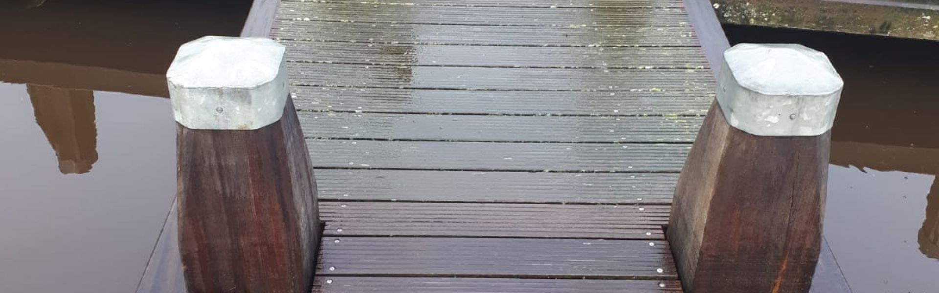 Houten of composiet vlonder en steigerplanken laten reinigen? Wij reinigen uw vlonder en steiger! Hierdoor is uw vlonder of steiger vrij van aanslag, mossen, algen en andere vervuiling. Heeft u ook last van gladde vlonders en of steigers? Laat ons de planken grondig schoonmaken met onze vlonder en steiger reiniger. Dit is een RVS disc die ervoor zorgt dat de oppervlakte egaal gereinigd wordt zodat er geen strepen zichtbaar zijn.
